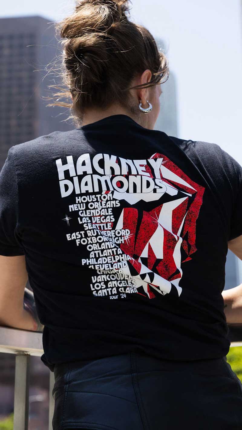 Show love for your favourite city stop with these exclusive Hackney Diamonds Tour tees, and posters.
