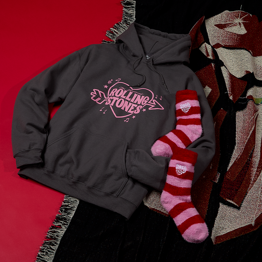 You (can) get some satisfaction this season with The Rolling Stones Cozy Collection. Cuddle up with the Hackney Diamonds plush blanket featuring a woven Stones tongue logo and The Love is Strong Cushion. Complete that cozy feeling this season with either a pair of Happy Socks or the full Happy Socks box set.