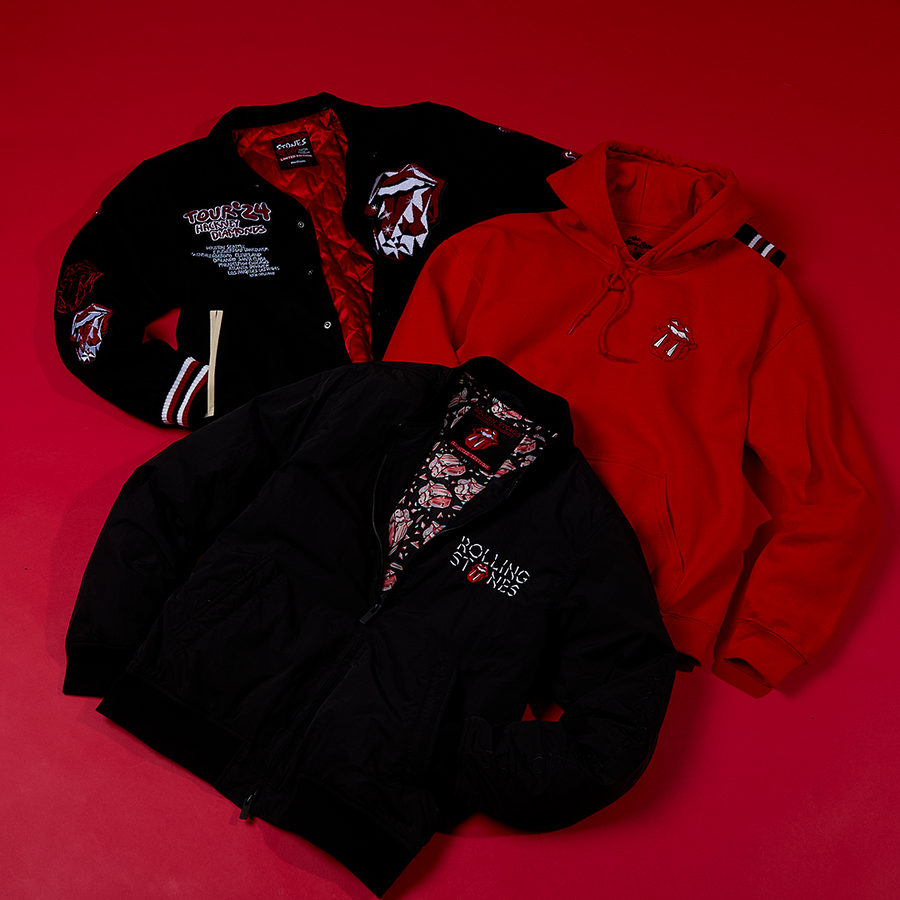 Don’t head out the door this season without layering up with a piece of Rolling Stones outerwear. Various styles include a hoodie, crewneck, and coaches jacket featuring new and classic Stones imagery.